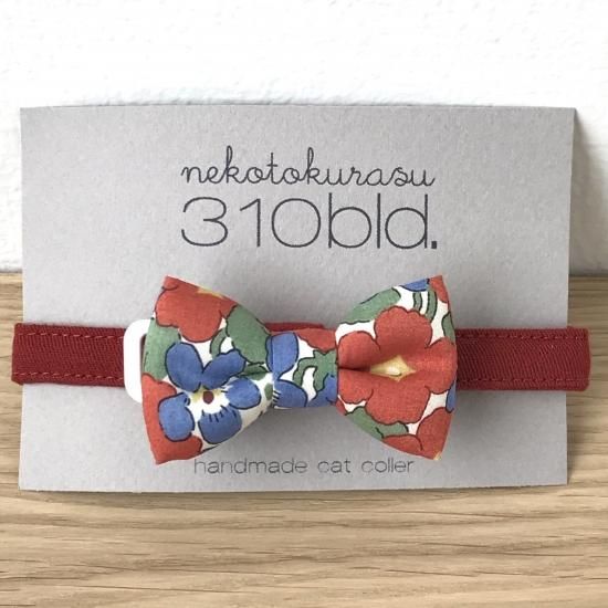 猫のリボン付き首輪 / リバティ / Ani-Rai red