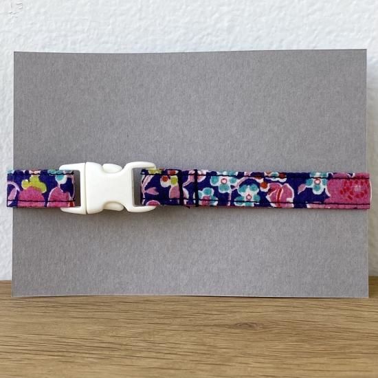 リバティ生地を贅沢に使用した小さめリボン付きのセーフティ首輪です。